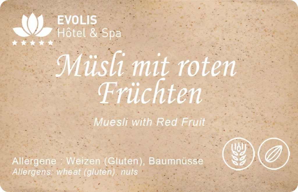 Buffets sind ein wichtiger Kontaktpunkt, bei dem eine klare und elegante Präsentation genauso wichtig ist wie die Qualität der Speisen und des Services. Mit Edikio können Hoteliers professionelle, mehrsprachige Buffet Schilder erstellen und drucken, die alle wichtigen Informationen wie Allergene oder spezielle Ernährungsformen enthalten. Unsere Lösungen ermöglichen das schnelle Drucken eleganter, langlebiger Buffet Etiketten, die zum Erscheinungsbild Ihres Hotels passen. So verbessern Sie die Kommunikation mit internationalen Gästen, erhöhen die Lebensmittelsicherheit und das Vertrauen – und erleichtern dem Personal die Arbeit bei Menüwechseln.