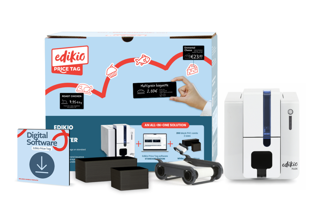 Edikio Price Tag bietet All-in-One-Drucklösungen für Ihre Käserei oder Molkerei, die sofort nach der Lieferung einsatzbereit sind. Jedes Kit enthält: