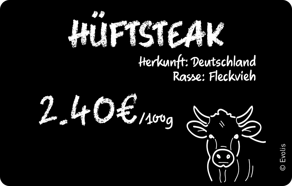 Mit Edikio Price Tag, Werten Sie Ihre Regale mit direkt im Geschäft gedruckten Preisschildern auf. Unsere auf PVC-Karte gedruckten Preisetiketten eignen sich perfekt für alle Arten von Schaufenstern und Geschäften: Metzgereien, Wurstwarengeschäfte, Bäckereien usw. Sie lassen sich ganz einfach in die Aushangleisten einfügen und stellen eine widerstandsfähigere Lösung dar als Papier- oder Klebeetiketten. Ihre Artikel und Produkte sind korrekt etikettiert und enthalten alle nützlichen Informationen für Ihre Kunden auf der Vorderseite und für Ihr Personal auf der Rückseite: Preis, Gewicht, Herkunft, Strichcodes, Zubereitungstipps, Waagencode usw. Außerdem sind die mit Edikio gedruckten Preisetiketten besonders leicht zu reinigen, im Gegensatz zu Rollenetiketten.
