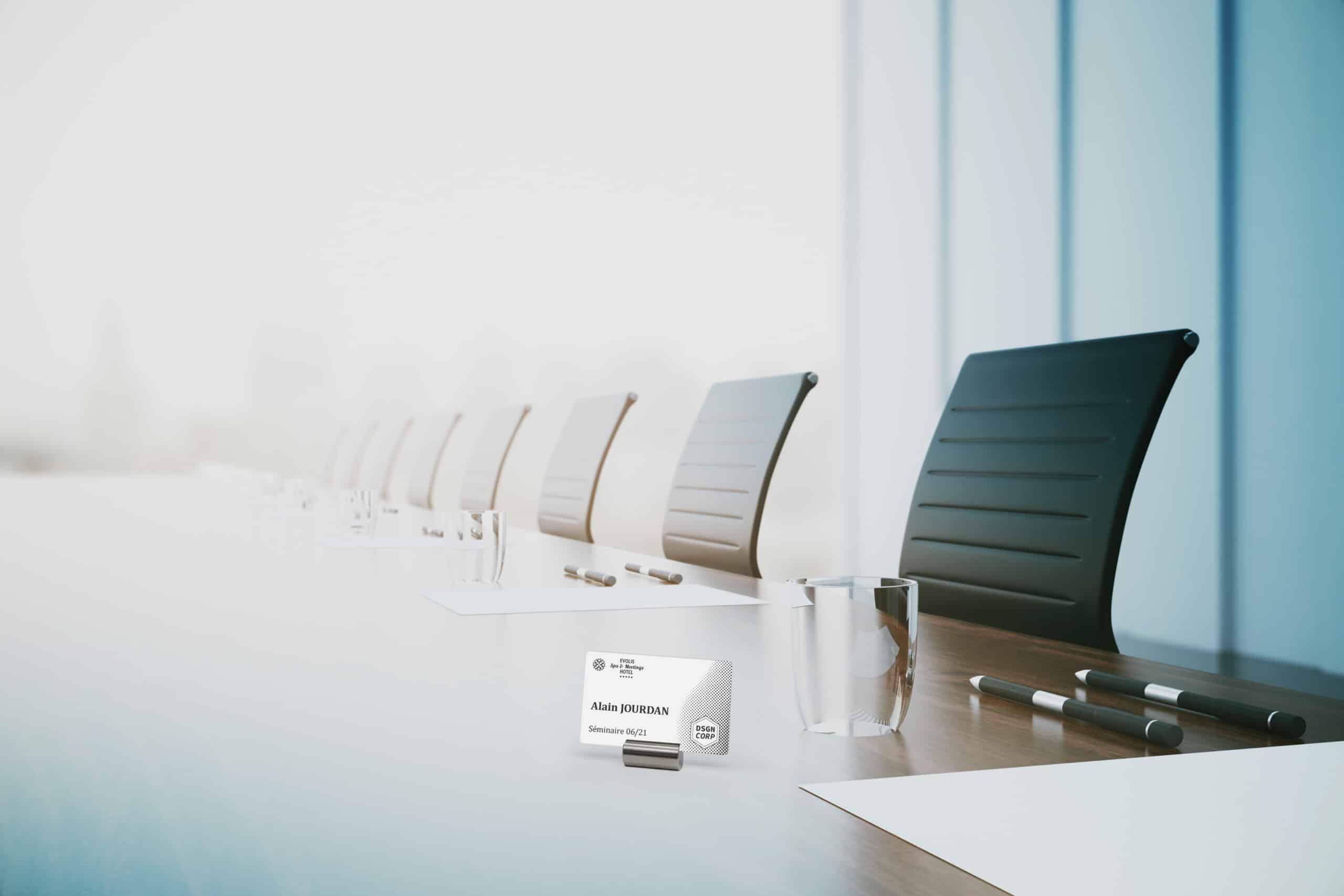 Professionalisieren Sie Ihre Dienstleistungen, indem Sie den Organisatoren verschiedene Arten von Karten auf Plastikträger anbieten, um ihre Veranstaltung zu optimieren: Einladungen, Teilnehmerausweise, Erinnerungskarten, Platzkarten oder Buffet-Etiketten.