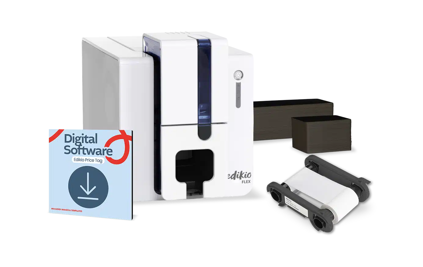 Edikio Price Tag, bietet All-in-One-Drucklösungen, die sofort nach der Lieferung einsatzbereit sind. Jedes Kit umfasst :