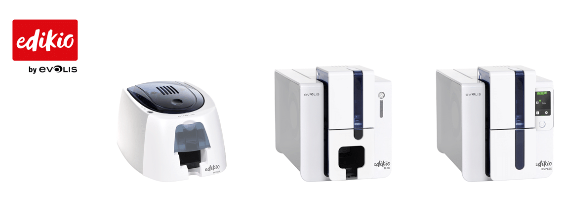 Die Drucker funktionieren so einfach wie ein normaler Bürodrucker. Die Plastikkarten und das Druckband, die im Edikio-Paket enthalten sind, lassen sich mit einem einzigen Handgriff installieren.